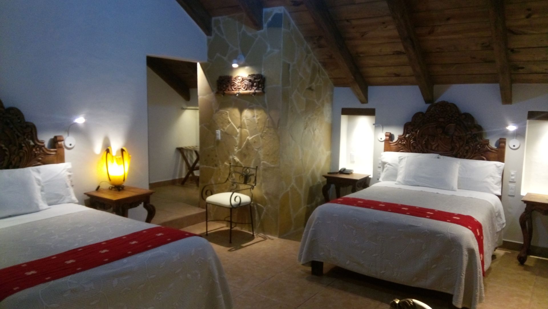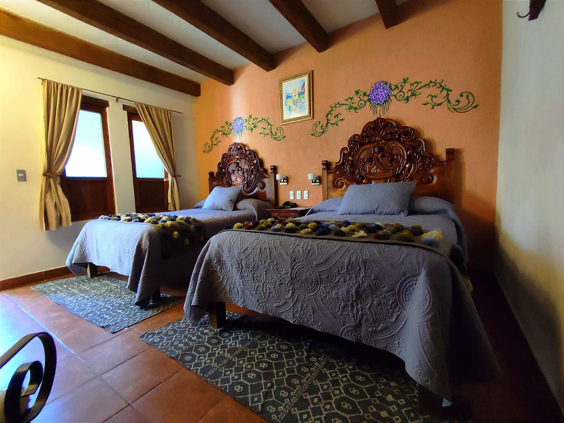 Las habitaciones están decoradas al estilo colonial mexicano, con detalles en madera, labrada por artesanos mexicanos y con las comodidades de un hotel 4 estrellas. Todas las habitaciones cuentan con agua caliente, TV por cable, ducha y baño privado, secadora de cabello, espejo de vanidad, amenidades, teléfono, caja de seguridad y Wi-Fi gratuito en áreas comunes.